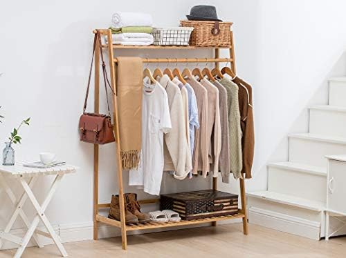 CONSIDERATE DETAILS DESIGN – Top rod provides 41.7” sufficient space to hang any long pants, overcoats and dresses;Widen and thicken bottom shelf providing a great bearing capacity;Sunken screw holes and well polished bamboo to prevent any scratches of your family