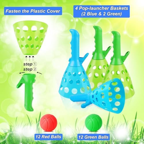 š„ćEASY To PLAYćHold the ball holder basket in your hands, press the trigger to launch the ball and another one use basket to catch it. Let’s start the throwing and catching ball races with friends.