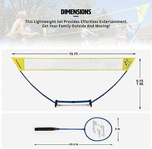 EastPoint Sports 4-Way Badminton Set Complete with Badminton Net, Rackets, Shuttlecocks and Carry Caddy – Easy Set-Up Outdoor Sports Equipment & Badminton Net for Backyard or Outdoor Games