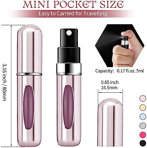【DESIGN】The filled bottle has a visual window to easily see how much perfume remains. 6 pcs per set, 6 different colors can help with organizing your different scents.