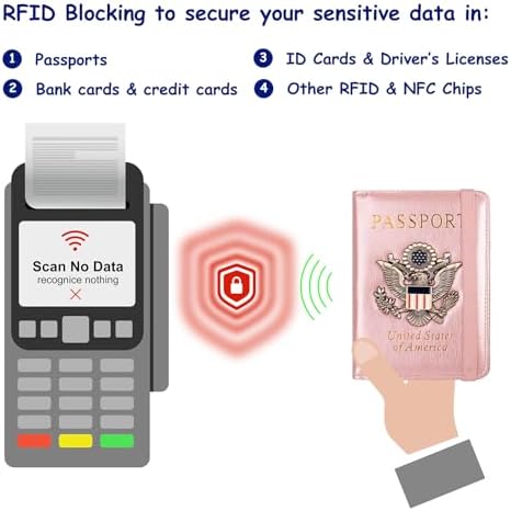 RFID Security: The leather passport holder rfid blocking has a special material to block RFID signals so that the passport organizer can protect your personal information in your passport and credit cards from unauthorized scans. RFID blocking shielding material of the passport holder men women is used to prevent thieves from swiping your credit card to steal your personal information in airports or crowded places.