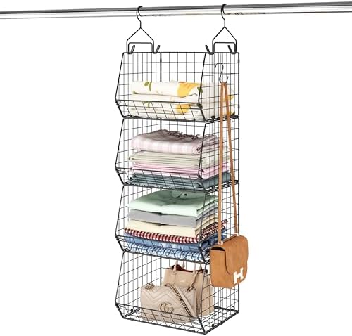 4 in 1 or Use Alone: X-cosrack closet hanging organizer is the layered design, used alone or stacked according to your own need and idea. And you can screw all the three baskets together and hang them as a unit on the closet rod to store clothes, hats, sweaters, jeans, shirts, shoes, purses and other accessories. Also, you can hang 2 baskets on the wall, and place 2 on the shelf. You can DIY the using methods.